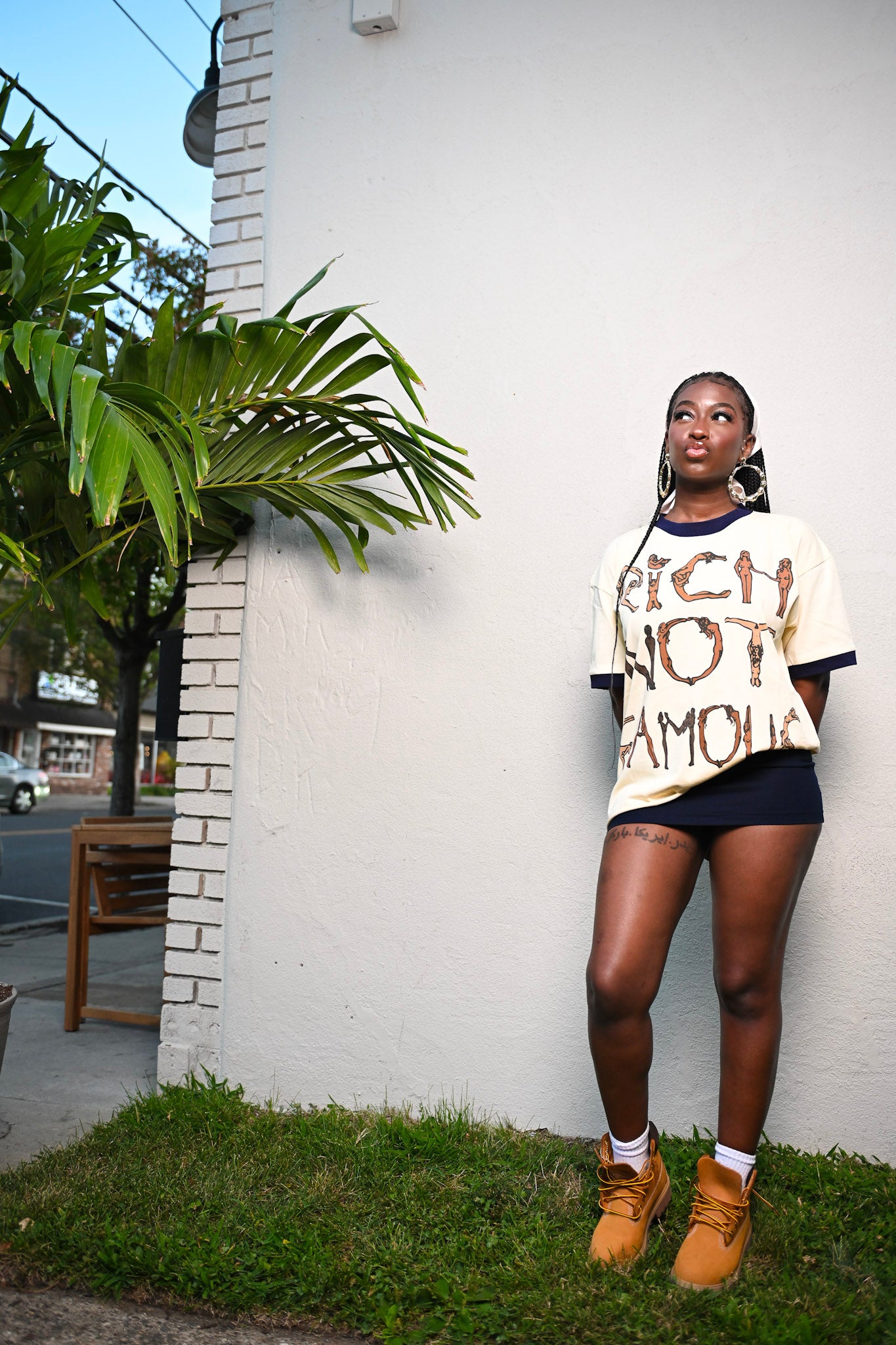 SIZE & FIT : This is a oversized ringer tee slight hem crop